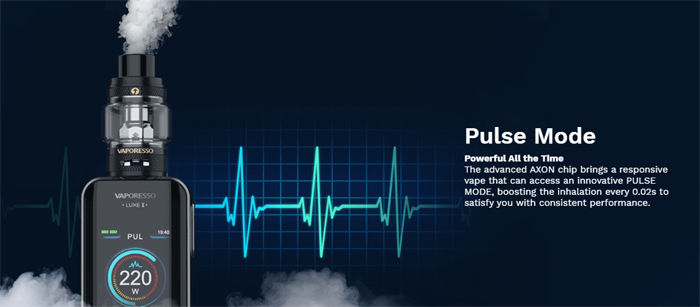 این ویپ با بهره گیری از دو باتری ۱۸۶۵۰ و چیپست AXON قادر است تا به ۲۲۰ وات نیز برسد . این دستگاه با استفاده از چیپست پیشرفته ، کویل های مش ، مخزن با حجم بالا و قدرت بالا ، کام دهی بالایی را به شما می دهد .